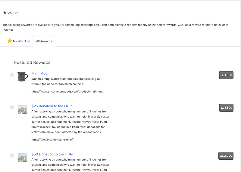 接著來看最重要的reward吧,點進reward tab就可以看到各種可選擇的reward以及所需要的積分,大部分是gift card跟慈善捐款,也有一些實體的物品不過都有限制說不寄送到北美以外的地方…QQ 好吧,只好安慰自己說社群的reputation就是最好的reward了…